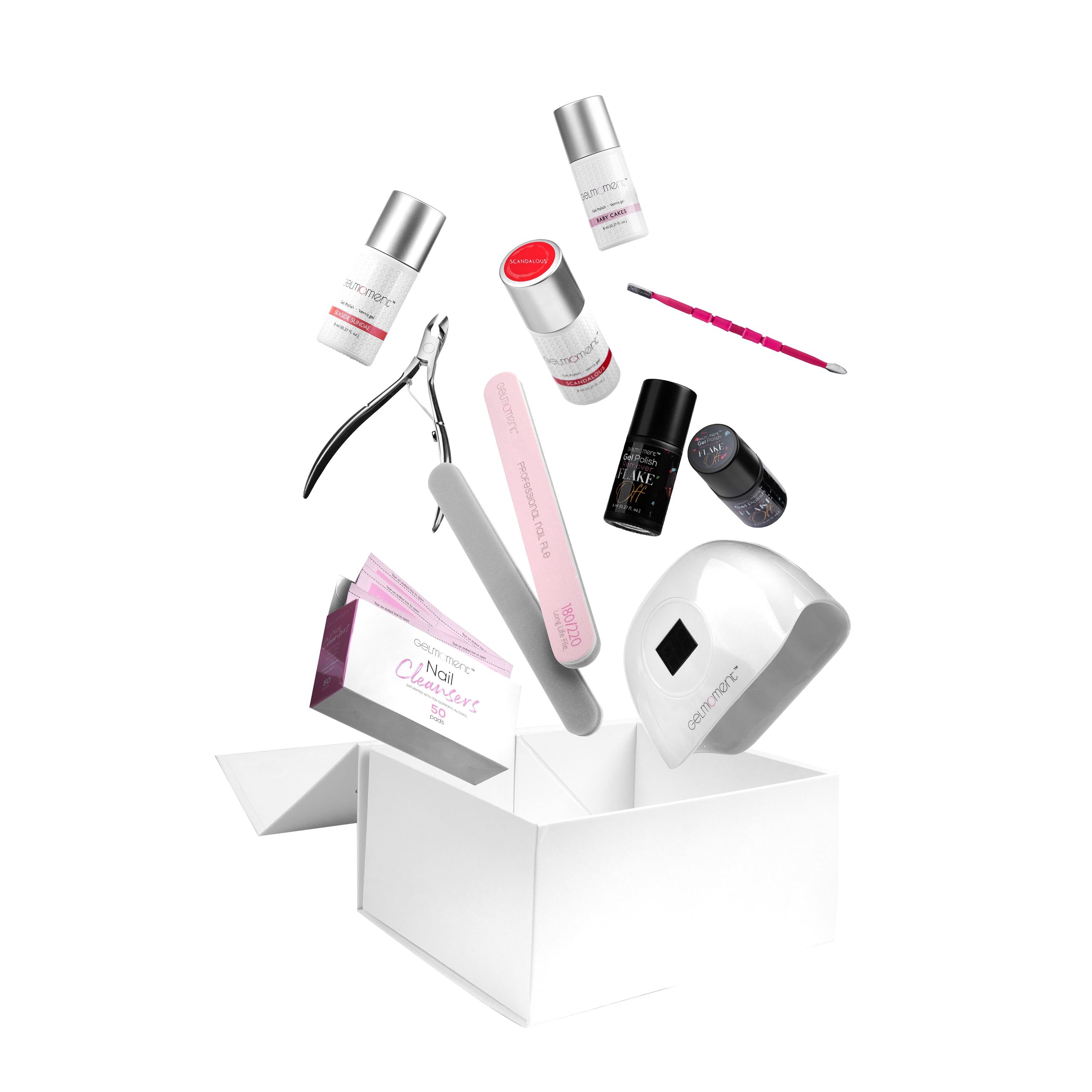 The Deluxe Customer Kit is designed for those who are comfortable in applying GelMoment Gel Nail Polish and are ready to use our Deluxe Four Finger Lamp, which works by automatic sensor!