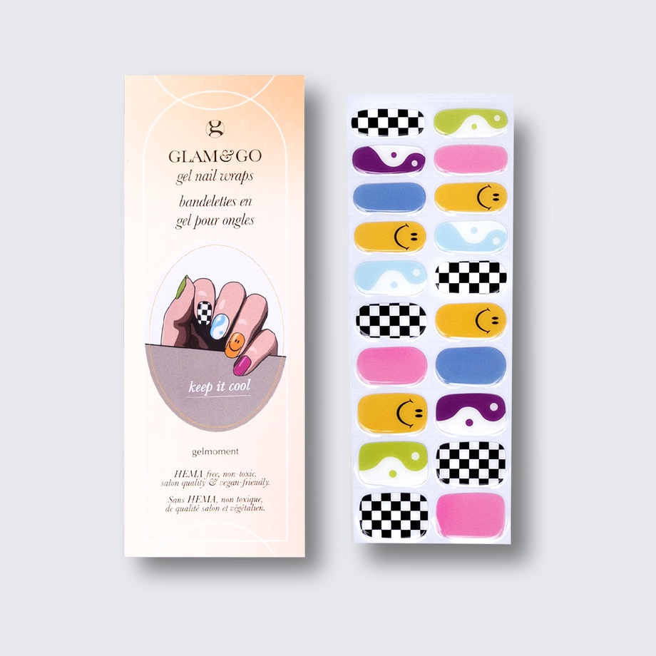 Our GLAM & GO gel nail wraps ensure that no matter how complex your chosen nail design, the application process remains incredibly simple. Our GLAM & GO gel nail wraps require no glue, base coat, or top coat—just peel them off the packaging, apply them to your nail, trim to size, cure twice, and voilà!