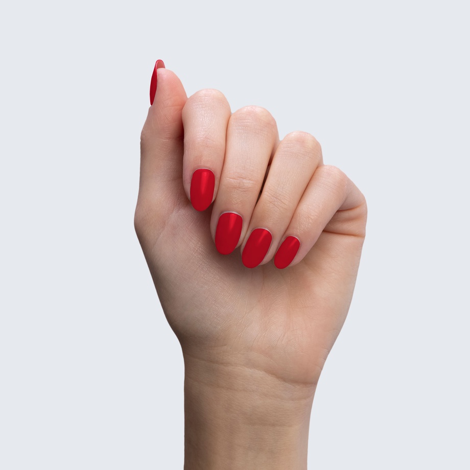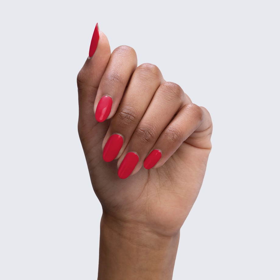 Here’s a poppy red polish with a certain je ne sais quoi.